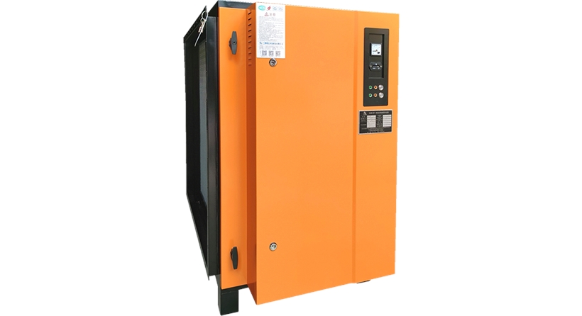利用高压电场原理,通过高频电源装置与静电组合模板一一对应,形成电场分布,使油烟粒子荷电后在另一极板上吸附,从而对油烟粒子及粘性粉尘进行高效捕集,并对气味进行分解净化。
